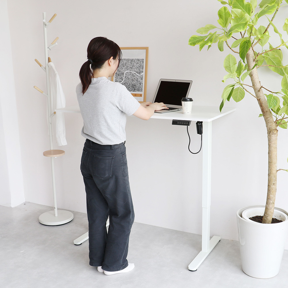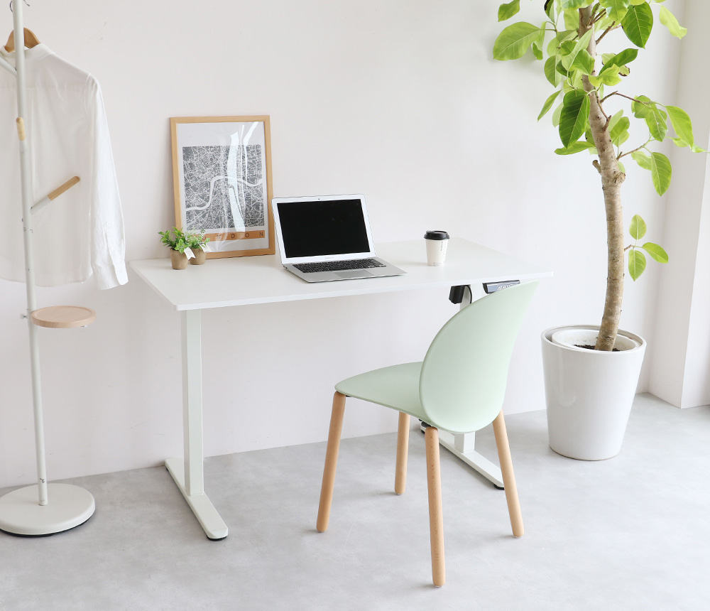 暮らしにとけこむミニマルな電動昇降デスク。高さは72cmから118cmまで無段階で調整可能。健康的なライフスタイルの実現を応援します。