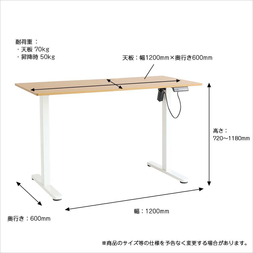| 商品詳細 | 組立仕様 :組立品 耐荷重:天板70kg 昇降時の天板50kg |
